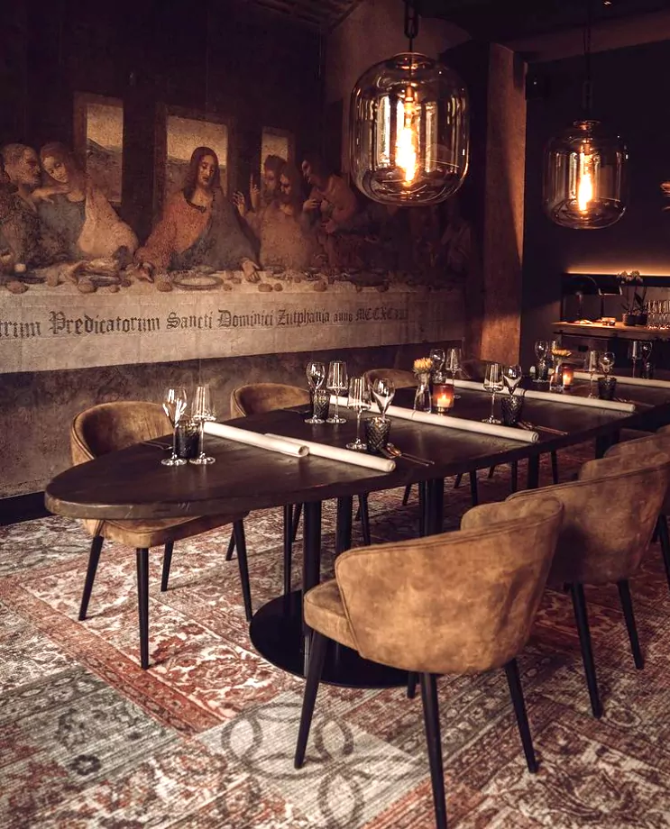 De initiatiefnemers van Boetiekhotel en restaurant Broederenklooster in Zutphen wilden in de wijnkelder van hun hotel-restaurant die magische Middeleeuwse sfeer creëren. Door behang aan te brengen met daarop Het Laatste Avondmaal van Leonardo da Vinci, is dat goed gelukt. De gewelven kelder ademt nu een Middeleeuwse sfeer, je waant je er echt in de kloostertijd!